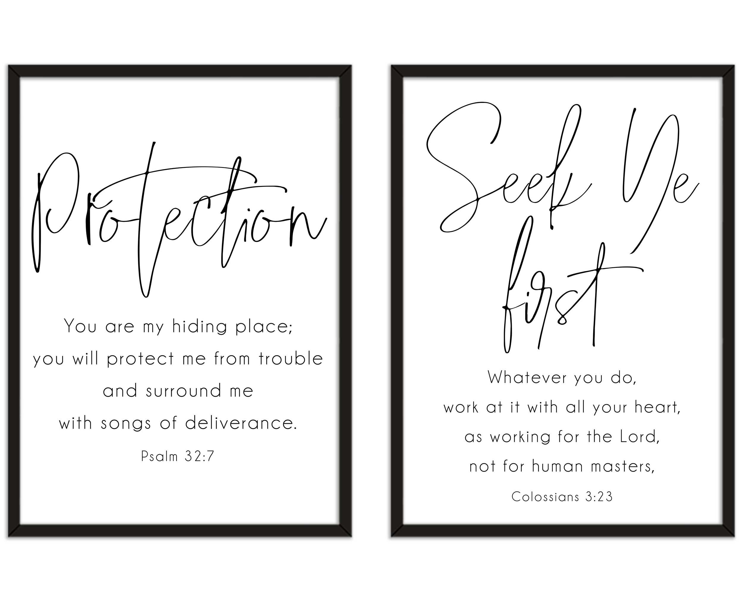 Set Of 2 Bible Verse Wall Art Colossians 3 23 Psalm 327 Seek Etsy